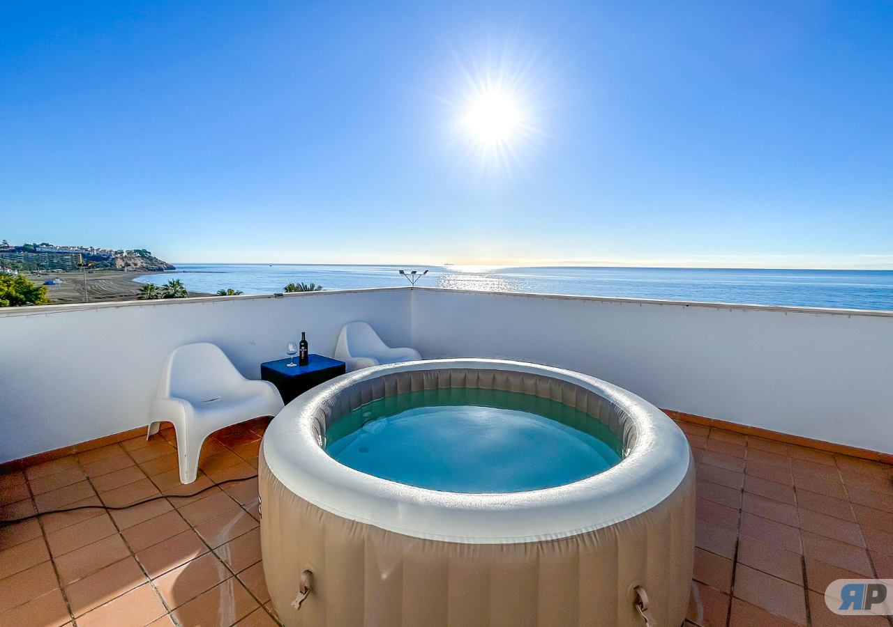 El apartamento 2A con terraza y vistas al mar tiene una segunda terraza privada con jacuzzi.