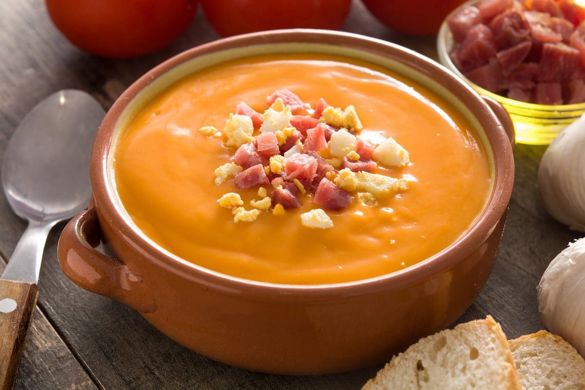 Eine cremige, kalte Tomatensuppe – perfekt an warmen Tagen.